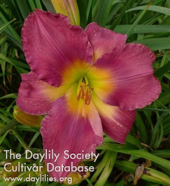 | Description : rose red blend with amber yellow band and white edge above lime to green throat | |