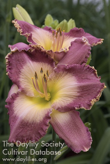 Description : orchid lavender with cream pink watermark and chartreuse throat