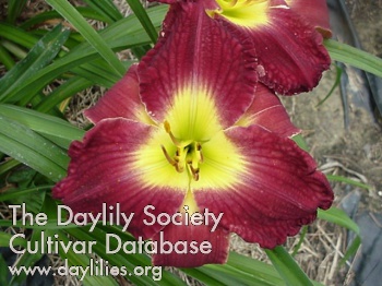 | Description : deep dark purple with lighter halo above deep green throat | |