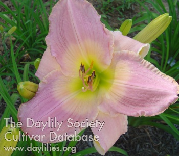 Description : purple bitone with blue gray watermark and dark purple pencil edge above wide triangular yellow to green throat