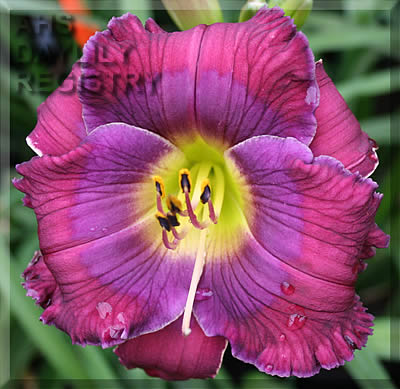 | Description : light lavender blue with a smoky blue gray eye and edge, petal edges are lined with blue gray teeth | |