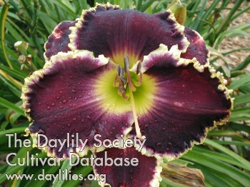 | Description : merlot with icy pink lavender eye and edge, yellow to green throat | |