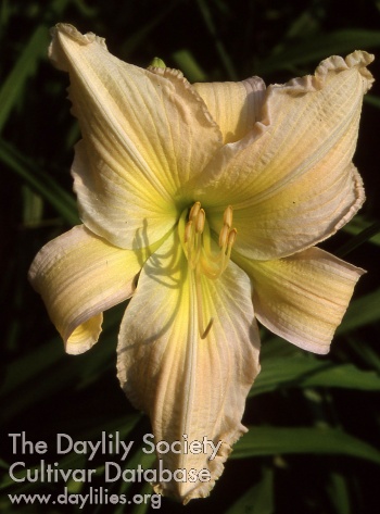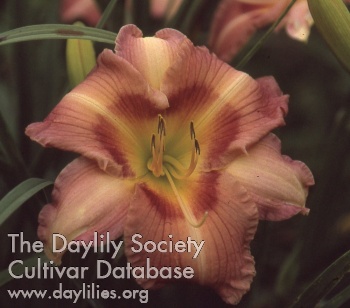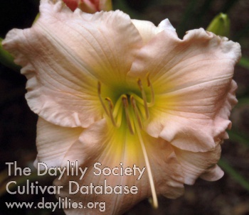 | Description : light pink blend with knobby yellow edge and light green throat | |