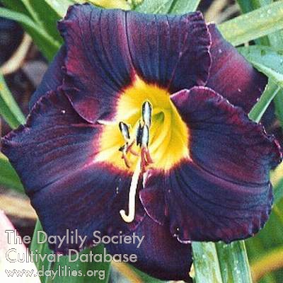 | Description : black purple self with green throat | |