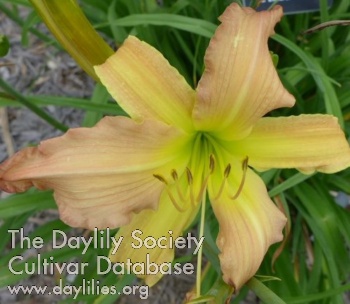| Description : silvery lavender edged lavender with darker lavender halo above yellow green throat | |