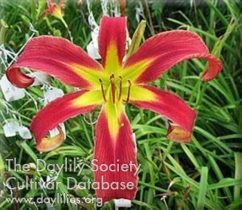| Description : dark red with a very dark double arrowhead eyexone and very green throat | |