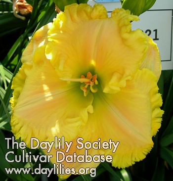 Description : deep green throat that spills out on a bright yellow self with a feathered orange congregated at the petal ends