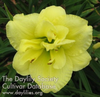 | Description : Yellow self with ruffled edge and small green heart, pod fertile. | |