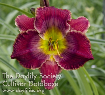 | Description : cinnamon red with white breaks, flat bloom, piecrust ruffle | |