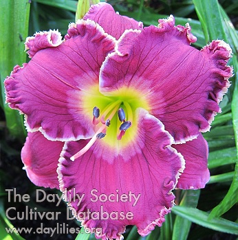 | Description : large, round, purple with cream watermarked eye | |