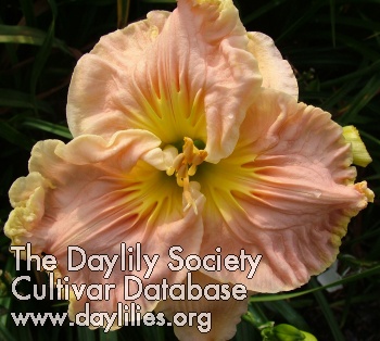| Description : Light peach, sculpted yellow throat, ruffled pink and yellow edge. | |