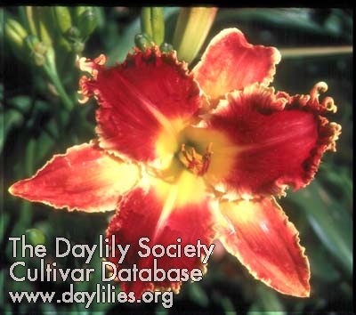 | Description : red with darker red eye and white teeth edge above green throat | |